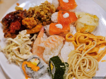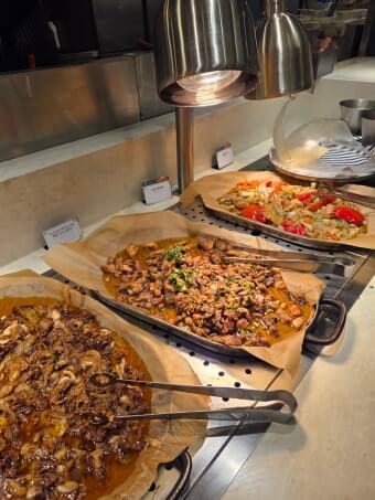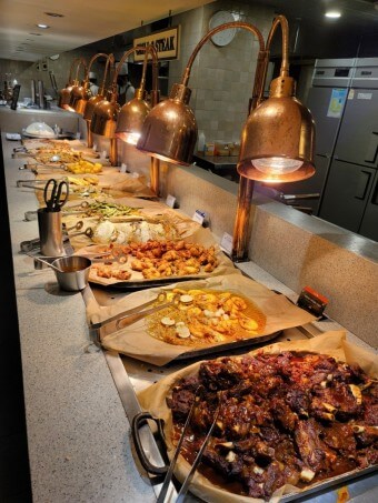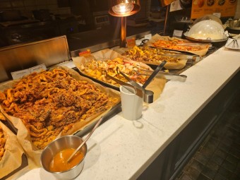 애슐리 퀸즈는 고급 메뉴 구성이 특징입니다. 스테이크, 바비큐 폭립, 로스트치킨, 연어 등의 육류·해산물 메인 요리 외에도
